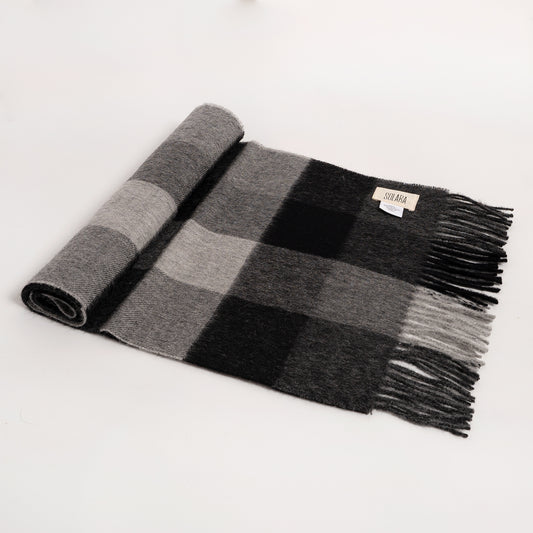 Black & White Checkered Peruvian Baby Alpaca Scarf – Stylish and Warm Across Europe